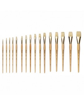 Brosse plate sortie longue en soie de porc cambrée. Manche long bois verni incolore, virole en cuivre nickelé. Collection d'Artigny en soies de porc de haute qualité liées cambrées pour renforcer la nervosité du pinceau. Grâce à une sélection...