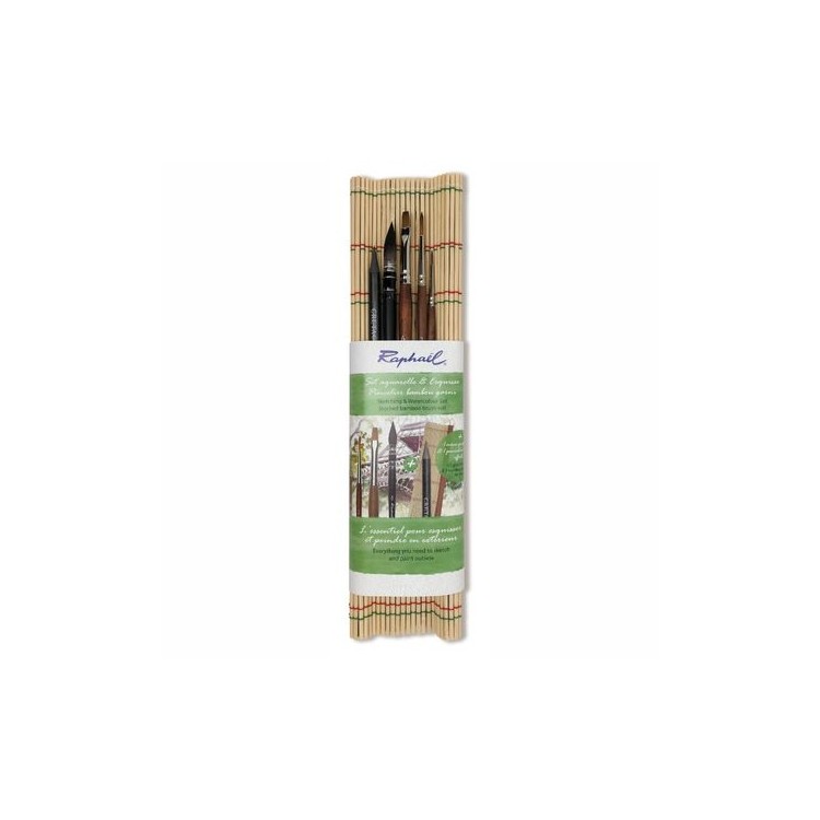 Pincelier Bambou 4 Pinceaux Aquarelle + Mine de Plomb - RAPHAEL
